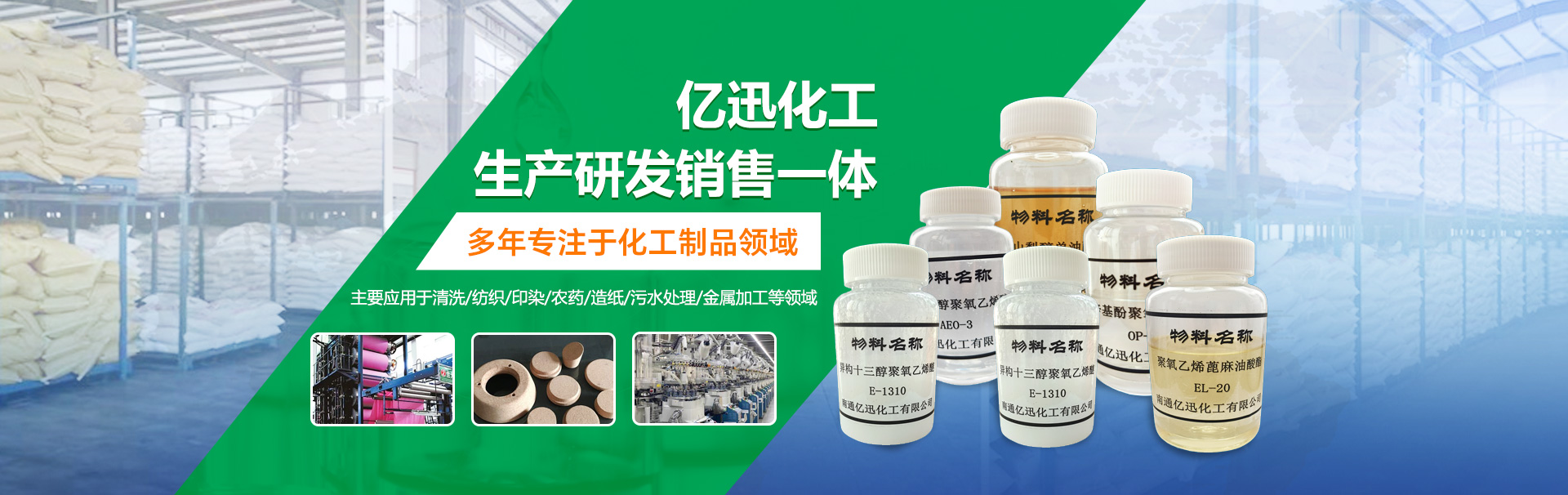 產品系列有粉末聚乙二醇、聚醚多元醇、聚丙二醇、勻染劑、乳化劑、抗靜電劑、滲透劑、柔軟劑、農藥乳化劑、聚乙二醇、聚醚等。